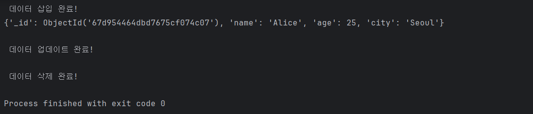 ○ delete_one(filter) : 조건을 만족하는 첫 번째 문서 삭제